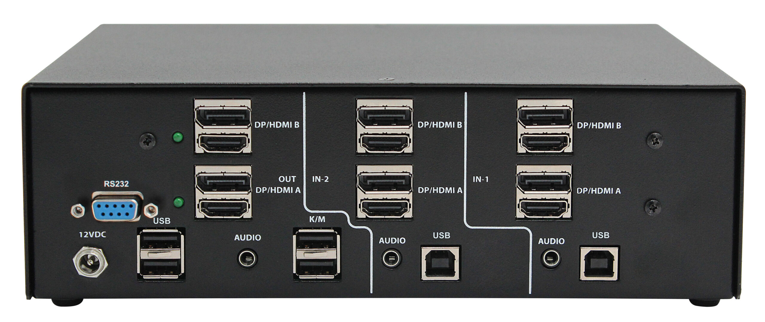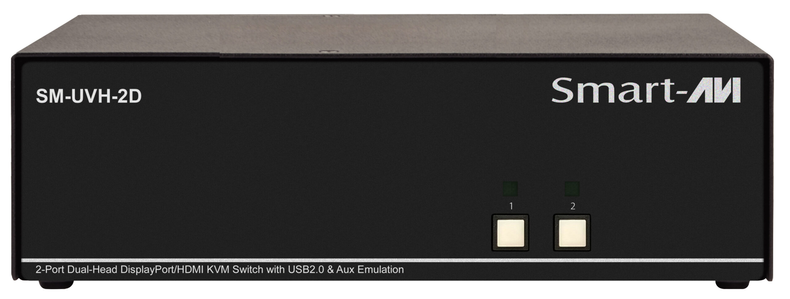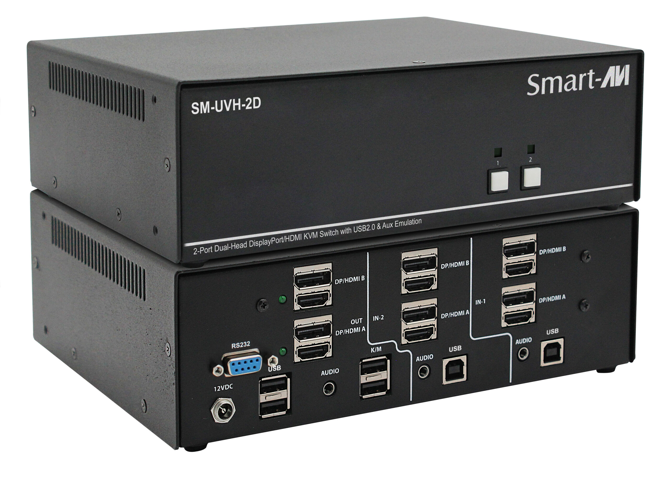 | SM-UVH-2D-S | 2-Port Dual-Head 4K/60Hz DisplayPort/HDMI KVM Switch with USB 2.0 & Aux Emulation. Includes: [SM-UVH-2D, and PS12VD3A] |