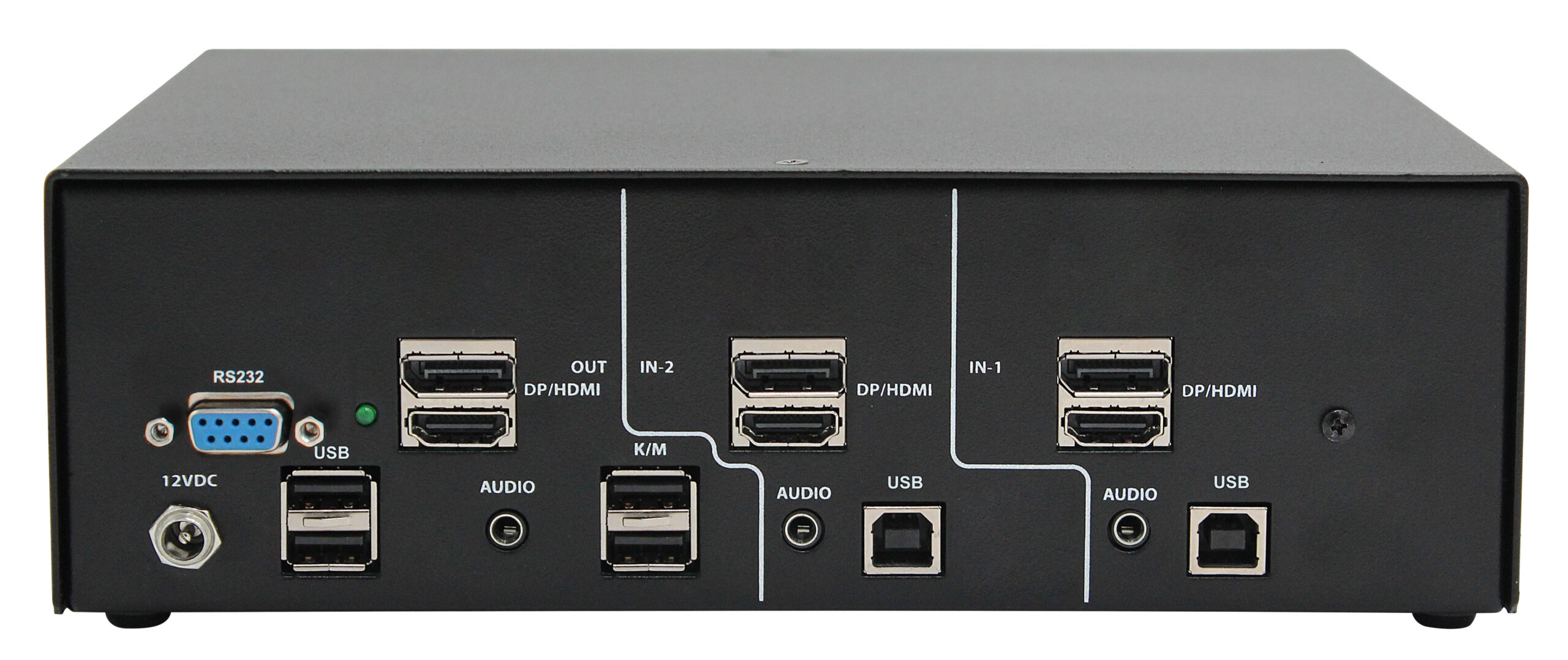 SM-UVH-2S-S 2-Port Single-Head 4K/60Hz DisplayPort/HDMI KVM Switch with USB 2.0 & Aux Emulation.